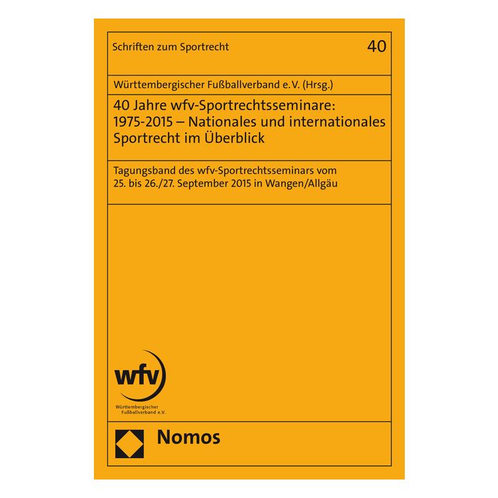 | Untertitel | Tagungsband des wfv-Sportrechtsseminars vom 25. bis 26./27. September 2015 in Wangen/Allgäu |
