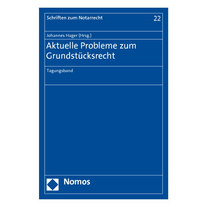 „Aktuelle Probleme des Grundstücksrechts“ war der Titel einer Fachtagung, die im Mai 2010 von der Forschungsstelle für Notarrecht an der Juristischen Fakultät der Ludwig-Maximilians-Universität München ausgerichtet wurde. Behandelt wurden Gestaltungsprobleme bei der Baulandausweisung und Bauplatzveräußerung, die Auswirkungen des Gesetzes zur Einführung des elektronischen Geschäftsverkehrs (ERVGBG) auf die GbR im Grundstücksrecht sowie die Möglichkeit der Wiederaufladung einer Vormerkung. Der Tagungsband enthält die Schriftfassung der Vorträge von Notar Professor Dr. Dr. Grziwotz, Notar Lautner und Professor Dr. Hager.