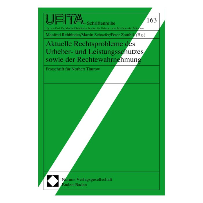 Norbert Thurow hat mehr als 25 Jahre in den Verbänden der Tonträgerhersteller und der GVL gewirkt und dabei immer wieder auf die Entwicklung des deutschen und internationalen Urheberrechts Einfluß genommen. Die Beiträge des Bandes spiegeln die thematische Spannbreite seines Wirkens wider.