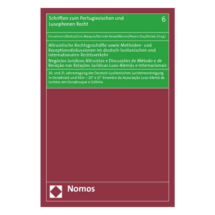 Untertitel Negócios Jurídicos Altruístas e Discussões de Método e de Receção nas Relações Jurídicas Luso-Alemãs e Internacionais