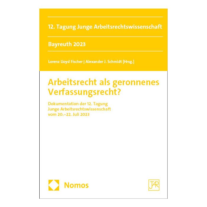 Der Band dokumentiert die Referate der 12. Tagung Junge Arbeitsrechtswissenschaft (vormals Assistentinnen- und Assistententagung im Arbeitsrecht), die vom 20. bis 22. Juli 2023 an der Universität Bayreuth unter dem Generalthema „Arbeitsrecht als geronnenes Verfassungsrecht?“ stattfand.
