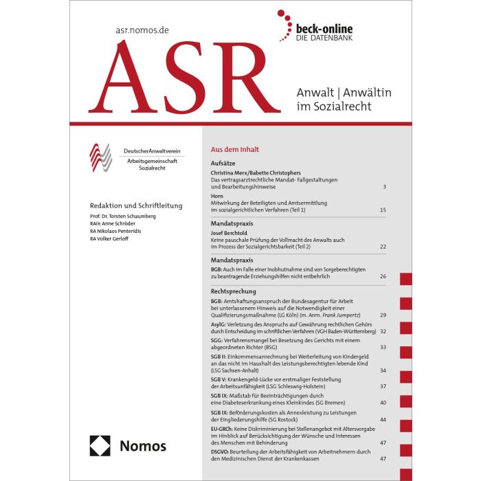 | Untertitel | Arbeitsgemeinschaft Sozialrecht im Deutschen AnwaltVerein | Prof. Dr. Torsten Schaumberg (Schriftleitung) |