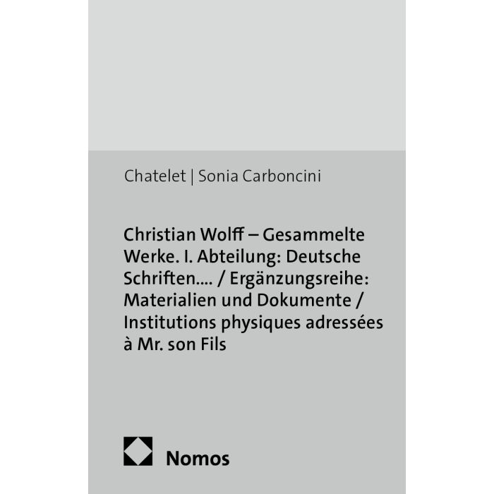 Christian Wolff - Gesammelte Werke. I. Abteilung: Deutsche Schriften.... / Ergänzungsreihe: Materialien und Dokumente / Institutions physiques adressées à Mr. son Fils