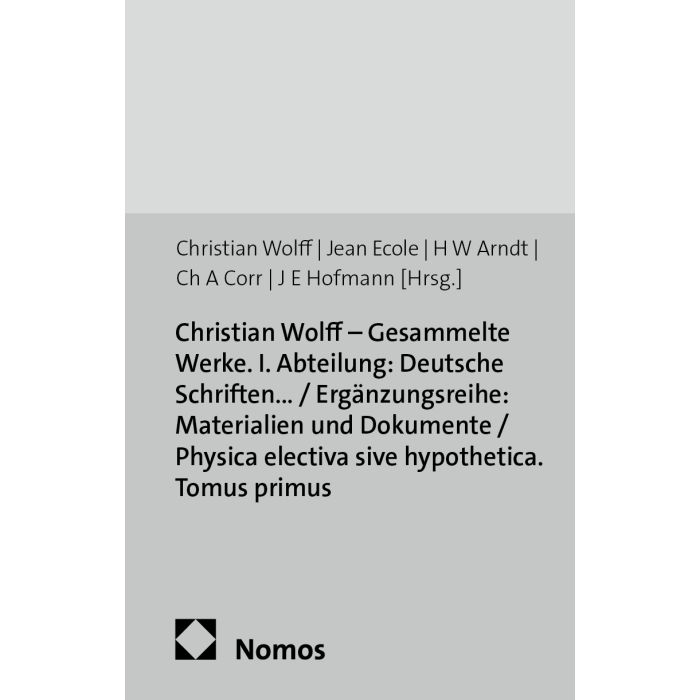 Christian Wolff - Gesammelte Werke. I. Abteilung: Deutsche Schriften.... / Ergänzungsreihe: Materialien und Dokumente / Physica electiva sive hypothetica. Tomus primus