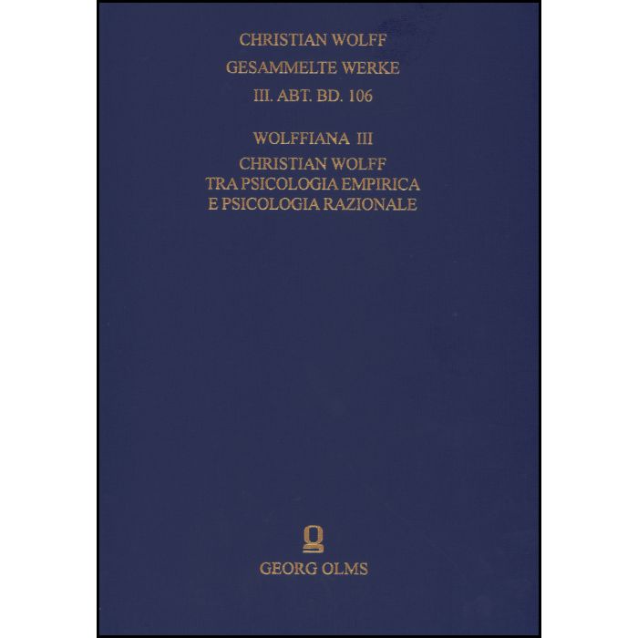 Christian Wolff. Gesammelte Werke. I. Abteilung: Deutsche Schriften.... / Ergänzungsreihe: Materialien und Dokumente / Wolffiana III: Christian Wolff tra psicologia empirica e psicologia razionale