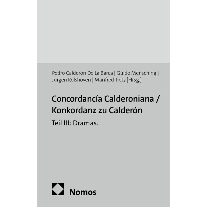 Im Rahmen der vollständigen Konkordanz der Werke Calderóns, deren Teile I und II für die die Autos Sacramentales und das Teatro cómico breve bereits vorliegen, erscheinen nunmehr die Teile III und IV mit den Konkordanzen der Dramas und der Comedias. Grundlage auch dieser Konkordanzen ist – wie für die Konkordanz der Autos Sacramentales – die von Ángel Valbuena Prat und Ángel Valbuena Briones bei Aguilar herausgegebene Ausgabe der Obras completas von Calderón de la Barca.