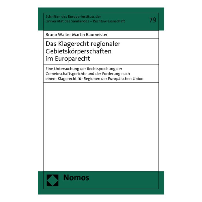 Die europarechtliche Studie beschäftigt sich umfassend mit dem Klagerecht regionaler Gebietskörperschaften vor den Gemeinschaftsgerichten. Das Klagerecht der Regionen – so die These des Autors – steht in einem Spannungsfeld zwischen der gesamtstaatlichen Verantwortung der Zentralregierung und der Berücksichtigung regionaler Kompetenzen. Dieses Spannungsfeld erfordert eine Lösung sowohl auf mitgliedstaatlicher Ebene als auch im Rahmen der Gemeinschaftsgerichtsbarkeit.