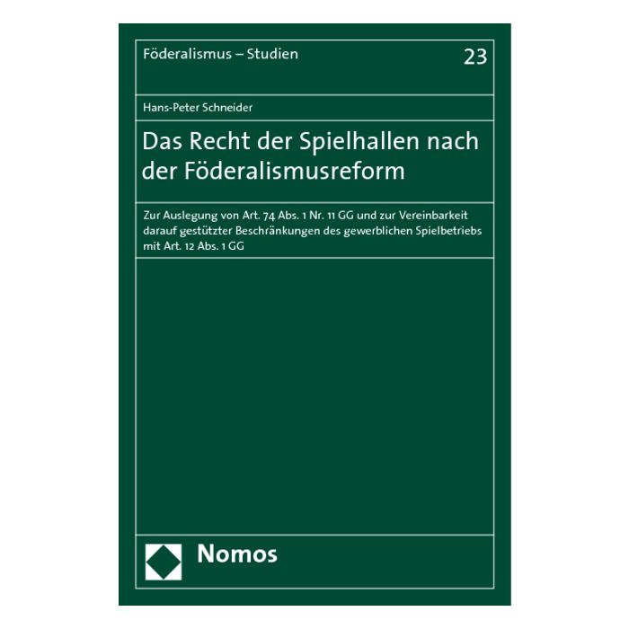 Das Buch beschäftigt sich mit der Gesetzgebungskompetenz für das „Recht der Spielhallen“, die mit der Föderalismusreform I vom 1. September 2006 auf die Länder übergegangen ist. Es weist anhand der Entstehungsgeschichte dieser neuen Landeszuständigkeit nach, dass sie sich nur auf Regelungen bezieht, die bisher im Rahmen von § 33 i GewO Angelegenheit des Bundes waren, und wendet sich damit gegen Versuche, sie auf das gesamte „Spielhallenwesen“ auszudehnen – einem Anliegen der Länder, mit dem diese bereits in der Föderalismuskommission nicht durchdringen konnten.