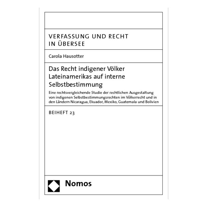 Eine rechtsvergleichende Studie der rechtlichen Ausgestaltung von indigenen Selbstbestimmungsrechten im Völkerrecht und in den Ländern Nicaragua, Ekuador, Mexiko, Guatemala und Bolivien VRÜ-Beiheft 23