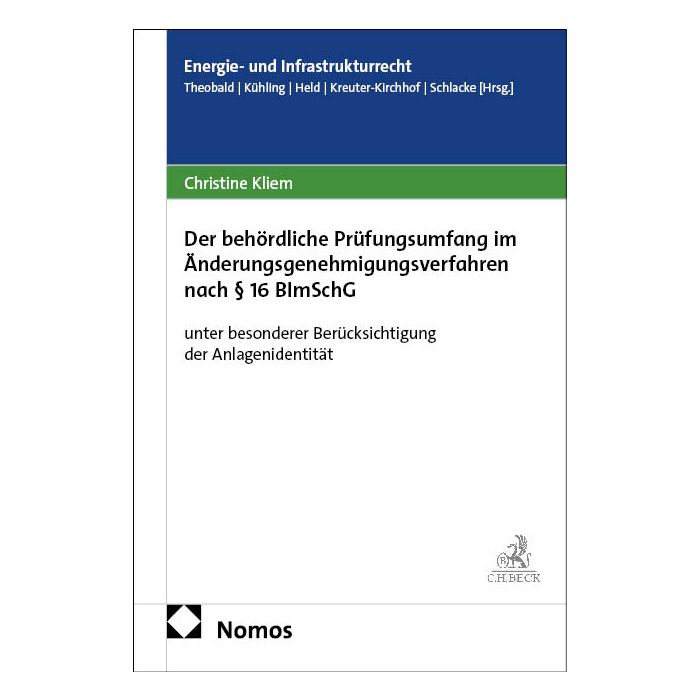 Das Buch widmet sich dem behördlichen Prüfungsumfang im Änderungsgenehmigungsverfahren nach § 16 BImSchG. Dahinter steht die Fragestellung, welche Bestandteile der zu ändernden Anlage in die Prüfung einzubeziehen und welche materiellen Vorgaben zu prüfen sind. Die Arbeit setzt sich kritisch mit der einschlägigen Rechtsprechung auseinander und analysiert Praxisfälle. Änderungen, die nicht auf einzelne Bereiche einzugrenzen sind, werden beleuchtet wie auch die Anlagenidentität. Die Adressaten sind Rechtsanwälte, Ministerien, Behörden, Anlagenbetreiber, Projektentwickler, Forschungseinrichtungen, Verbände und Richter. Die Autorin Christine Kliem, LL.M., ist Rechtsanwältin mit dem Schwerpunkt auf dem Recht der erneuerbaren Energien.
