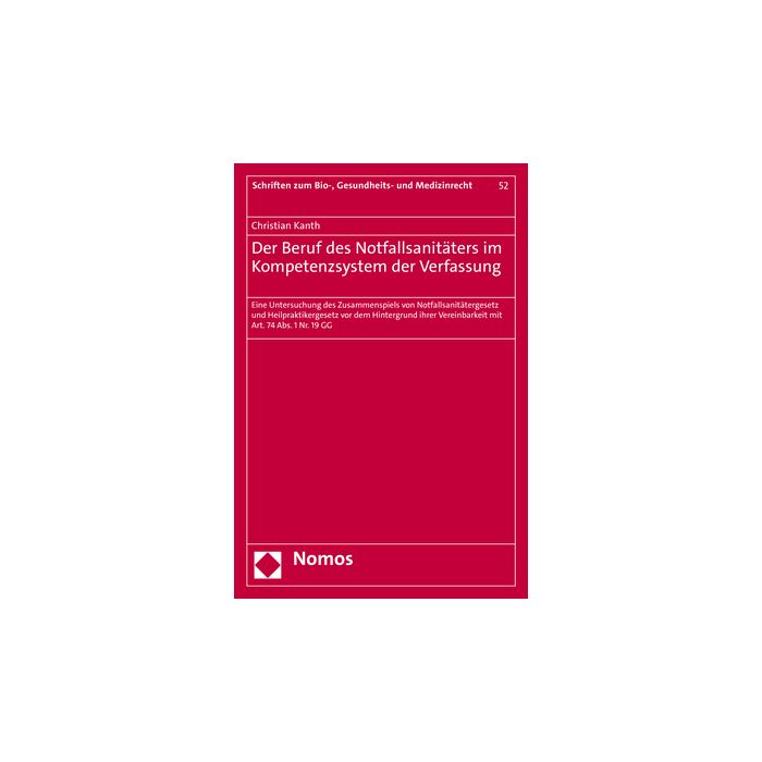 Mit dem Notfallsanitätergesetz (NotSanG) wurde am 22. Mai 2014 ein neuer nicht-ärztlicher Heilberuf geschaffen. Der Notfallsanitäter sollte den bis dahin etablierten Rettungsassistenten ablösen. Durch eine längere und medizinisch vertiefte Ausbildung sollte auf die gestiegenen gesellschaftlichen Bedürfnisse in Bezug auf die präklinische Versorgung von Patient:innen reagiert werden. Dafür sollte der Notfallsanitäter auch medizinisch invasive Kompetenzen erhalten. Die Regelungen des NotSanG weisen eine Vielzahl von Problemen auf. Ob das NotSanG mit den formellen und materiellen Anforderungen der Verfassung vereinbar ist, analysiert der vorliegende Band.