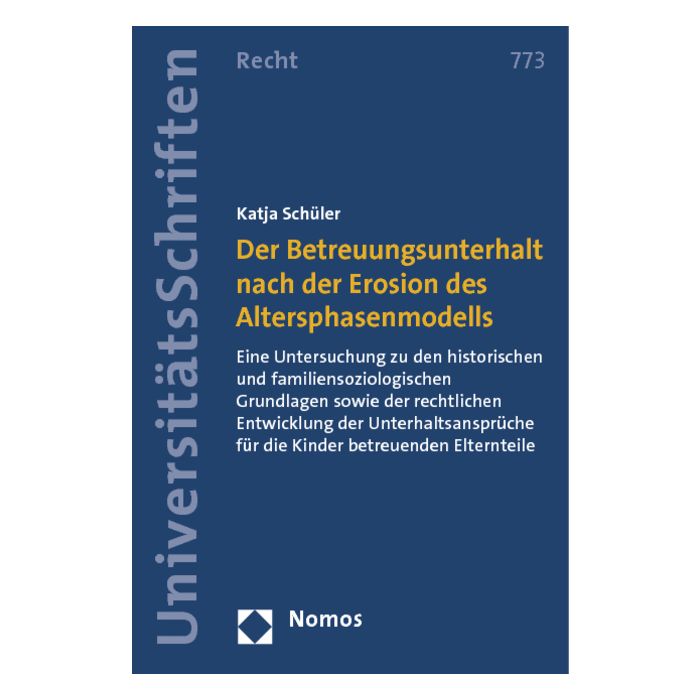 Die Studie untersucht die rechtliche Entwicklung des Altersphasenmodells seit dessen Entstehung mit Inkrafttreten des 1. EheRG von 1977 bis zur Aufgabe durch das Unterhaltsänderungsgesetz von 2007 in Verbindung mit der einhergehenden soziologisch zu beobachtenden Veränderung von Ehe und Familie. Daneben bildet die Verfasserin Fallgruppen für die Verlängerung der im Jahr 2008 und bis heute geltenden reformierten Unterhaltsansprüche nach § 1570 BGB und § 1615 l Abs. 2 S. 3 BGB zur Vereinheitlichung der Rechtsprechung auf der Grundlage vorhandener aktueller soziologischer Untersuchungen. Die Fallgruppen beziehen auch das Kindesalter, besondere Betreuungsbedürfnisse sowie regionale Betreuungsmöglichkeiten ein.