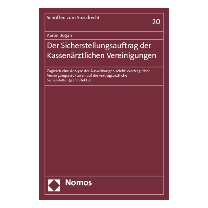 »Mit Aaron Bogans Dissertation liegt nun eine umfangreiche und gut mit Quellen belegte Übersichtsarbeit vor, die diese doch zentrale Institution der vertragsärztlichen Versorgung beleuchtet... mit den Ausführungen insbesondere zu den Auswirkungen von Selektivverträgen auf die Sicherstellungsarchitektur betritt Bogan terra incognita, was u.a. duch die rasante Abnahme zitierter Quellen deutlich wird, er zeigt bestehende Regelungsdefizite auf und bietet nicht wenige Denkanstöße und Lösungsansätze.«