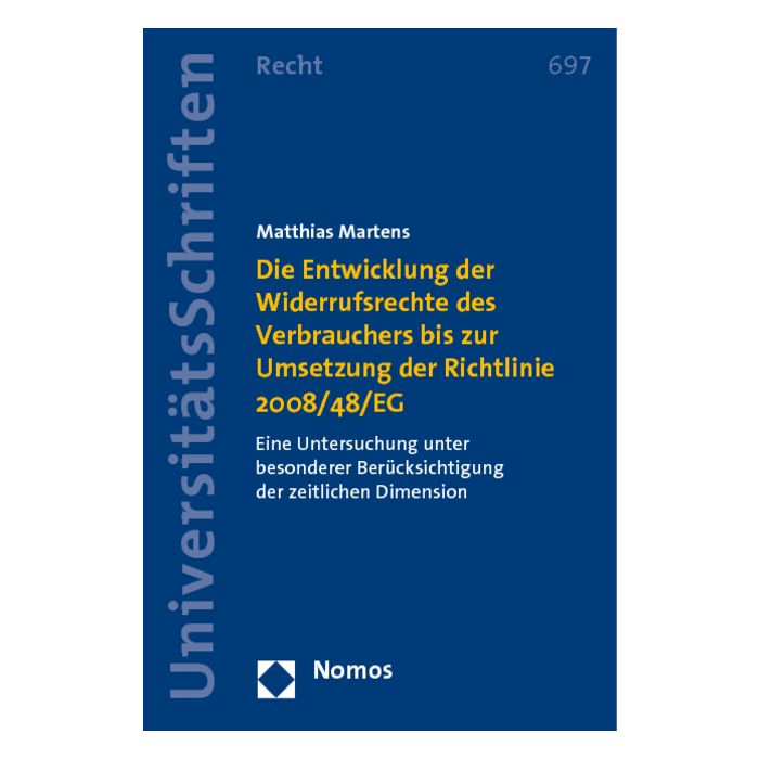 Dabei zeigt die Arbeit die historischen Entwicklung der Widerrufsrechte bei Haustürgeschäften, Fernabsatzverträgen und Verbraucherdarlehen seit deren Entstehung und gibt einen Einblick in die Widerrufsrechte beim InvG, FernUSG und dem VVG.