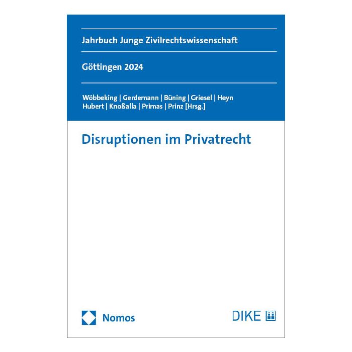 Der Band dokumentiert die 34. Jahrestagung der Gesellschaft Junge Zivilrechtswissenschaft e.V., die vom 25. bis 27. September 2024 an der Georg-August-Universität Göttingen stattfand. Die Beiträge der Tagung geben Einblicke in die vielfältigen Aspekte bestehender und vermeintlicher Disruptionen im Privatrecht und zeigen, wann und wie diese das Recht in Frage stellen oder verändern können. Die Themen reichen von Fragen der Digitalisierung und der Durchsetzung des Rechts bis hin zu gesellschaftlichen und normativen Umwälzungen.