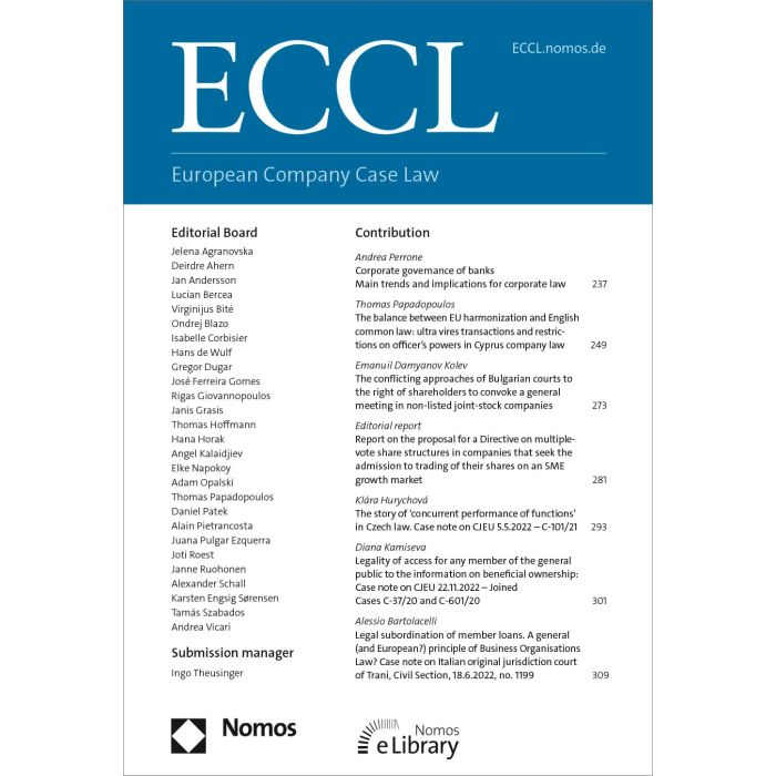 Mit einem europaweit aufgestellten Board mit Expert:innen aus allen Mitgliedsstaaten der EU bietet die neue Zeitschrift ECCL – European Company Case Law den idealen europäischen Überblick. Besondere Vorteile und Inhalte sind unter anderem zentrale Rechtsprechung und Gesetzgebung aus allen 27 Mitgliedstaaten, alle relevanten EuGH-Urteile auf einen Blick und alle Umsetzungsgesetze der europäischen Richtlinien.