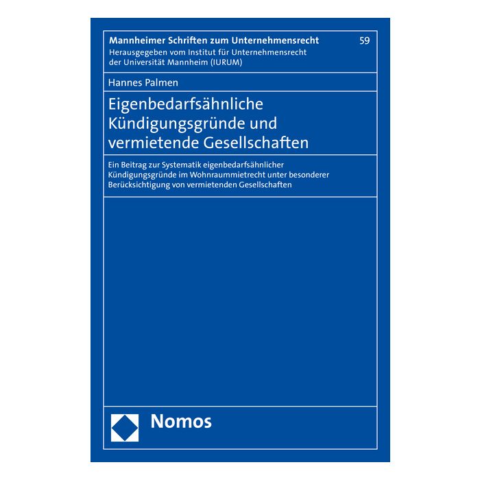 | Untertitel | Ein Beitrag zur Systematik eigenbedarfsähnlicher Kündigungsgründe im Wohnraummietrecht unter besonderer Berücksichtigung von vermietenden Gesellschaften |