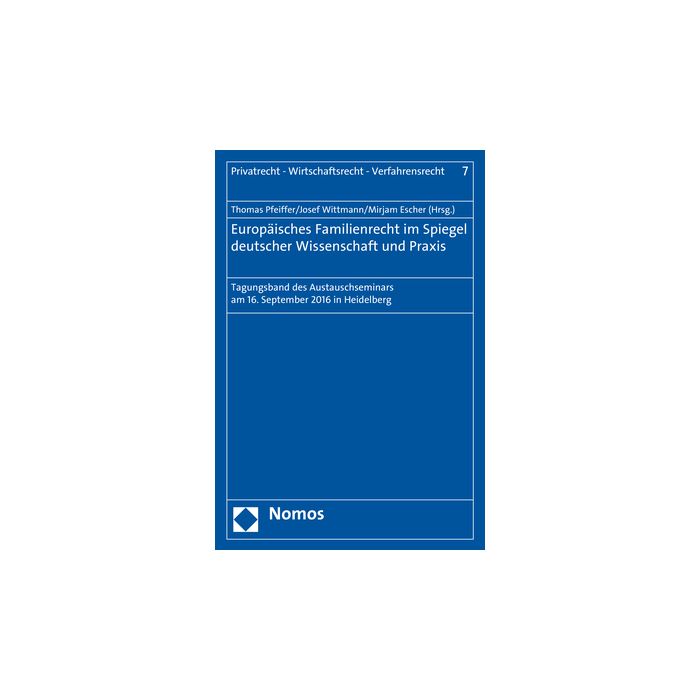 Das Institut für ausländisches und internationales Privat-und Wirtschaftsrecht der Universität Heidelberg hat am 16. September 2016 ein Austauschseminar zum Europäischen Familienrecht veranstaltet. Die Vorträge von Vertretern aus Wissenschaft und Praxis wurden für diesen Tagungsband schriftlich ausgearbeitet.