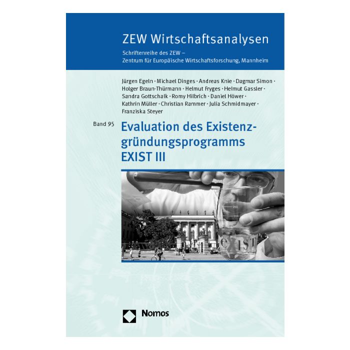 Seit 1998 wird mit dem Programm EXIST – zunächst vom BMBF, seit 2006 vom BMWi – versucht, die Gründungstätigkeit aus wissenschaftlichen Einrichtungen zu fördern und zu unterstützen. Mit dieser Studie legt ein Konsortium aus ZEW, Joanneum Research und WZB die Evaluation der gegenwärtig laufenden Programmstufe EXIST III vor. Hierbei werden die Programmkonzeption sowie die Umsetzung des Programms genauso evaluiert wie auch die Beiträge zu den ausdrücklichen Zielsetzungen von EXIST III, Beiträge zur Verbesserung der Gründungskultur an deutschen Wissenschaftseinrichtungen zu leisten und zu einer Erhöhung und Qualitätsverbesserung der Gründungsaktivitäten aus wissenschaftlichen Einrichtungen beizutragen. Abgerundet wird die Betrachtung durch eine Einordnung des Programms in weitere Aktivitäten zur Stimulierung des Gründungsgeschehens in Deutschland und einen Vergleich mit den diesbezüglichen internationalen Aktivitäten.