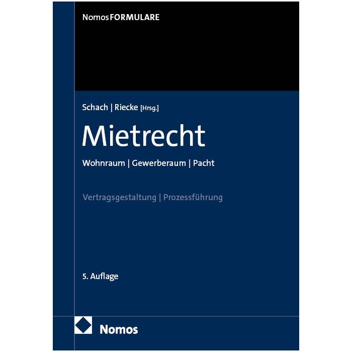Der „Schach/Riecke" ist eine Institution für die anwaltliche und gerichtliche Praxis im Wohnraum-, Gewerberaummiet- und Pachtrecht. Von der Vertragsgestaltung über die außergerichtliche Beratung bis zur Prozessführung bietet das Werk alles, was Praktiker:innen in der Mandatsarbeit benötigen. Es besticht durch