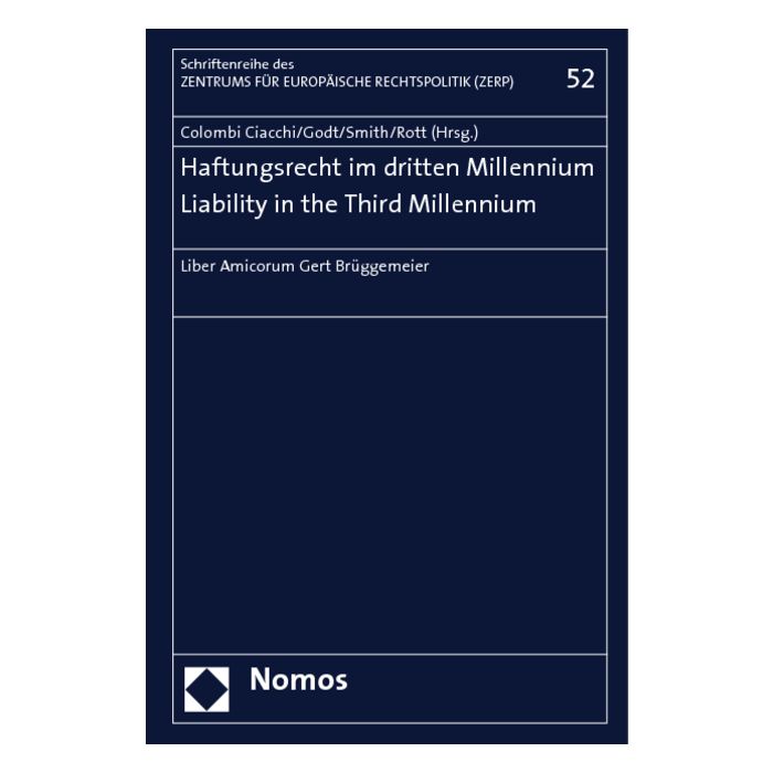 Das Liber Amicorum ist Prof. Dr. Gert Brüggemeier zum 65. Geburtstag gewidmet. Unter dem Titel „Haftungsrecht im dritten Millennium“ spiegelt das Werk die Forschungsinteressen des Jubilars wider.
