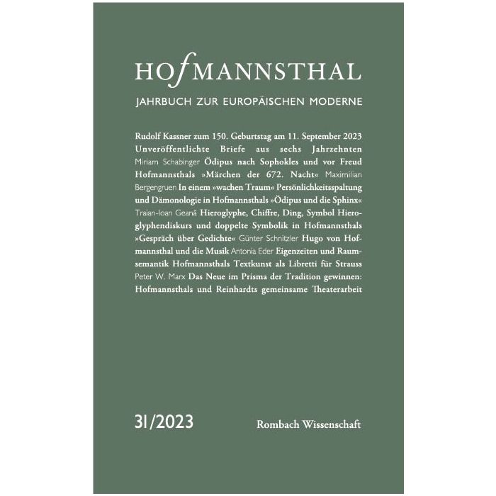 Das »Hofmannsthal – Jahrbuch zur europäischen Moderne« erscheint seit 1993 und gilt als das wichtigste Organ der Hofmannsthal-Forschung. Es stellt die Werke Hugo von Hofmannsthals (1874–1929) in den ästhetischen und sozialhistorischen Kontext der europäischen Kultur der Moderne und bietet neben der Veröffentlichung bisher unpublizierter Briefwechsel Beiträge namhafter Wissenschaftler:innen zur Literatur, bildenden Kunst, Philosophie, Psychologie, Politik, zu Tanz und Theater der Jahrhundertwende.
