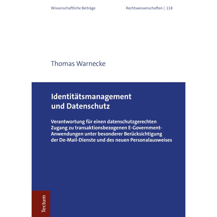 | Untertitel | Verantwortung für einen datenschutzgerechten Zugang zu transaktionsbezogenen E-Government-Anwendungen unter besonderer Berücksichtigung der De-Mail-Dienste und des neuen Personalausweises |