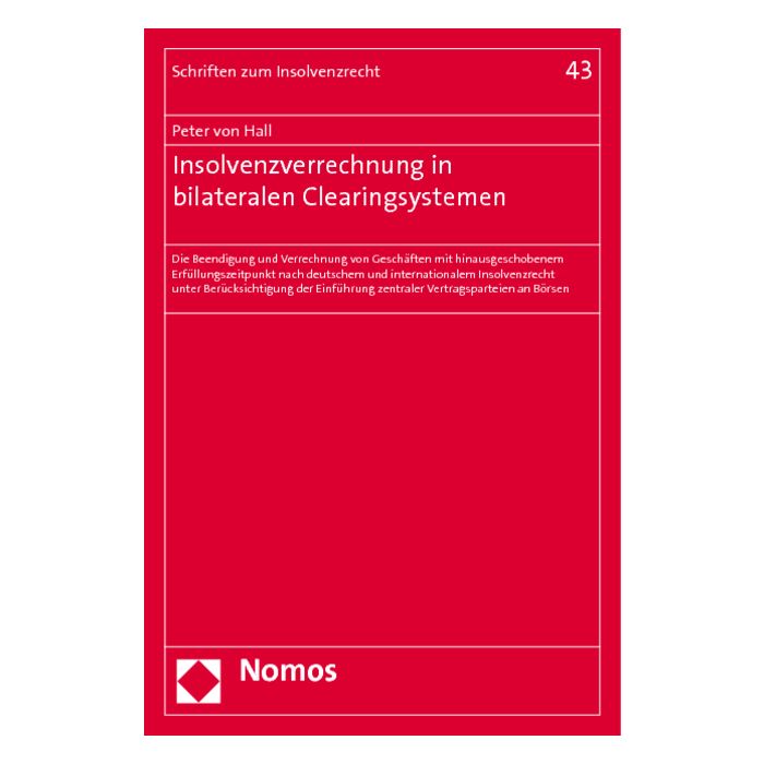 Die Insolvenz eines in den Börsenhandel eingebundenen Clearingmitglieds wirft für die beteiligten Händler existenzielle Folgefragen auf. In Systemen, in denen die Abwicklung der Geschäfte durch Zwischenschaltung einer zentralen Vertragspartei (CCP) organisiert ist, sollen die übrigen Händler durch diese vor dem Ausfall eines anderen Kontrahenten geschützt werden. Primärer Schutzmechanismus ist dabei die Verrechnung der gegenseitigen Forderungen und Leistungen im Insolvenzfall. Die Rechtslage hinsichtlich der Anwendung des § 104 InsO in Systemen mit CCP ist jedoch bisher unerforscht. Die umfassende Analyse der insolvenzrechtlichen Nettingsituation in Systemen mit CCP ist Gegenstand der Untersuchung.