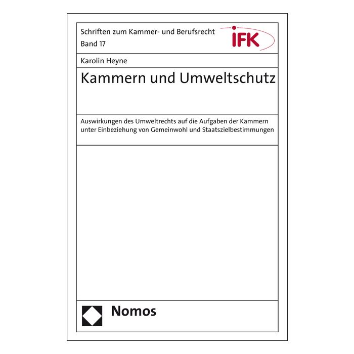 | Untertitel | Auswirkungen des Umweltrechts auf die Aufgaben der Kammern unter Einbeziehung von Gemeinwohl und Staatszielbestimmungen |