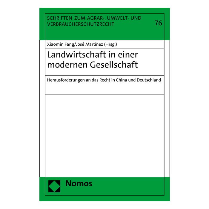 Der Band dokumentiert die Ergebnisse der chinesisch-deutschen Tagung zum Thema „Landwirtschaft in einer modernen Gesellschaft“, die im März 2016 in Nanjing (VR China) stattfand. Die Vielzahl der Themen spiegelt die Bandbreite des Agrarrechts wieder, angefangen beim Grundstücksrecht über den Umweltschutz bis hin zu den Folgen des demographischen Wandels.