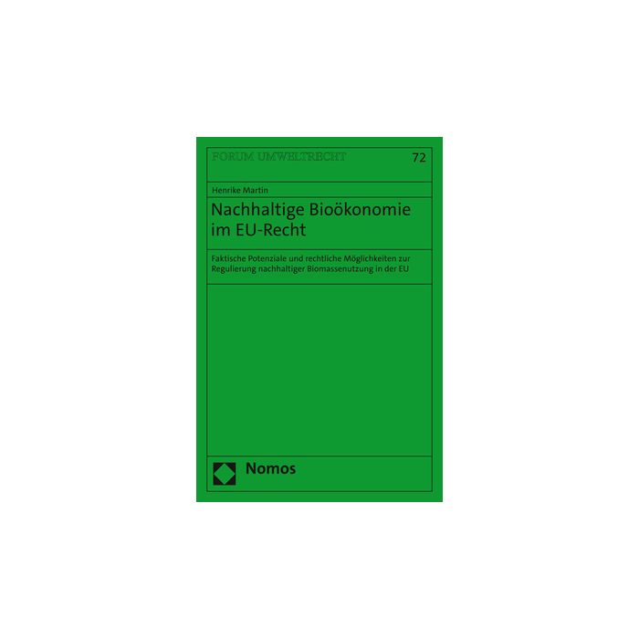 Ein prominenter Ansatz zur Verringerung von Umweltproblemen ist die Bioökonomie. Diese beschreibt eine Ökonomie, die fossile Rohstoffe durch Biomasse ersetzt. Da Biomassenutzung auch negative Umweltauswirkungen haben kann, wird eine nachhaltige Bioökonomie gefordert. Die Untersuchung konturiert, welche konkreten rechtlichen Anforderungen das Nachhaltigkeitsprinzip im EU-Recht hat. Zudem wird betrachtet, inwieweit eine nachhaltige Bioökonomie in der EU in praktischer Hinsicht umsetzbar ist. Darauf aufbauend wird aufgezeigt, inwiefern EU-primärrechtliche Anforderungen und faktischen Potenziale einer nachhaltigen Bioökonomie im geltenden EU-Sekundärrecht berücksichtigt sind. Für aufgezeigte Defizite werden Verbesserungsvorschläge entwickelt.