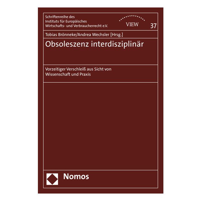 Vorzeitiger Verschleiß aus Sicht von Wissenschaft und Praxis“ unter der Herausgeberschaft von Tobias Brönneke und Andrea Wechsler. So beleuchtet das vom Bundesministerium der Justiz und für Verbraucherschutz (Berlin) geförderte Buch eine Bandbreite von Themen beginnend mit der Obsoleszenz im aktuellen, tagespolitischen und journalistischen Diskurs sowie einer Typisierung derselben. Es widmet sich sodann der Thematik aus Sicht der Wirtschaftswissenschaften, der technischen und naturwissenschaftlichen Disziplinen, der Designwissenschaften und der Rechtswissenschaften. Es umfasst ferner gesellschaftspolitische Betrachtungen der Obsoleszenz sowie eine interdisziplinäre Schlussbetrachtung. Das umfassende, fachwissenschaftliche und interdisziplinäre Werk bietet ein aktuelles und Zwischenfazit zur aktuellen Diskussion zum Thema Obsoleszenz und bringt diese mit grundlegenden neuen Erkenntnissen einen deutlichen Schritt voran.