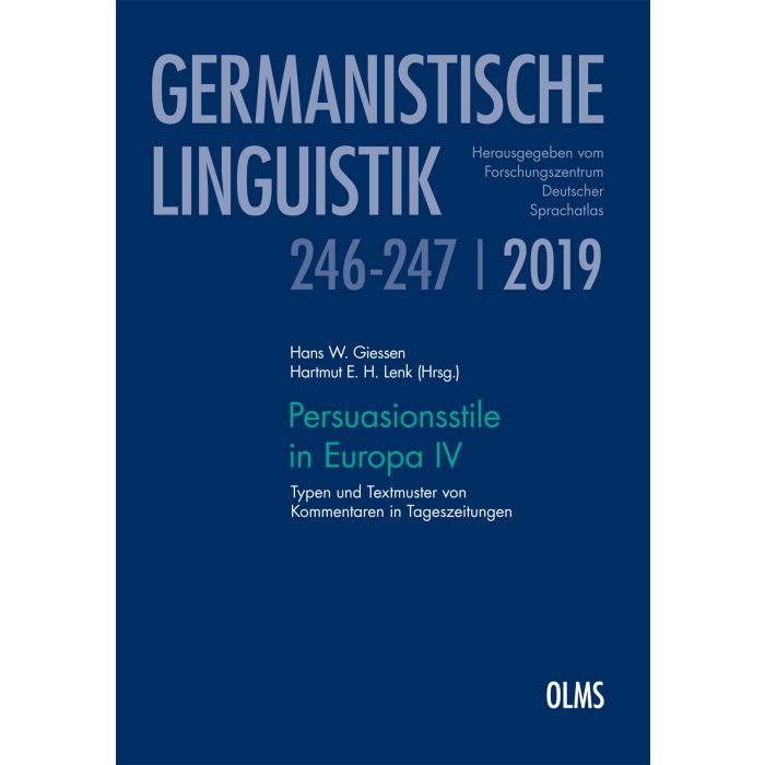In diesem vierten Band des Projekts "Persuasionsstile in Europa" geht es um die Kontrastierung der sprachlich-textuellen Eigenschaften von Kommentaren und Leitartikeln in Tageszeitungen europäischer Länder. Der Vergleich bezieht sich auf unterschiedliche Aspekte der charakteristischen Formulierung und der mehr oder weniger prototypischen Strukturen von Texten dieser Sorte aus dem "Helsinkier Kommentarkorpus". Bei letzterem handelt es sich um ein Parallelkorpus, das Kommentare und Leitartikel aus dem Zeitraum vom 11.-24. März 2013 aus einer jeweils repräsentativen Auswahl von Tageszeitungen aus 13 europäischen Ländern in 11 verschiedenen Sprachen enthält. Miteinander verglichen werden die entsprechenden Texte aus einerseits unterschiedlichen Zeitungstypen (wie überregionale vs. regionale / lokale Presse, Straßenverkaufszeitungen / "mid-market papers" vs. Qualitätszeitungen) und andererseits aus unterschiedlichen Ressorts bzw. Themensparten der Blätter (v. a. Politik, Wirtschaft, Sport). Die Beiträge behandeln Texte aus Finnland, Schweden, Großbritannien, Polen, Frankreich, Deutschland, der deutschsprachigen Schweiz, Österreich, Ungarn, Italien, Bulgarien und Griechenland.