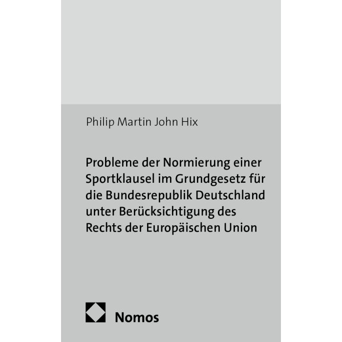 Probleme der Normierung einer Sportklausel im Grundgesetz für die Bundesrepublik Deutschland unter Berücksichtigung des Rechts der Europäischen Union