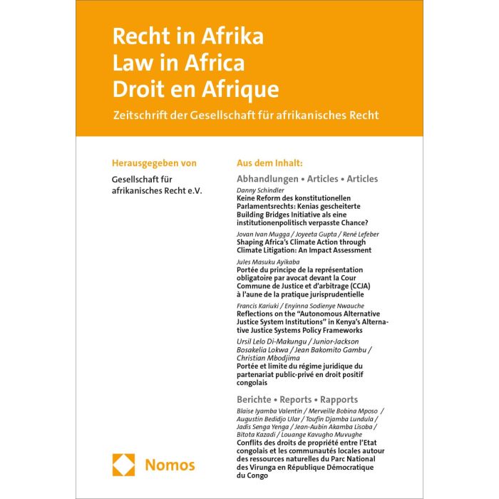 Die Recht in Afrika erscheint halbjährlich online und enthält Beiträge in deutscher, englischer und französischer Sprache.