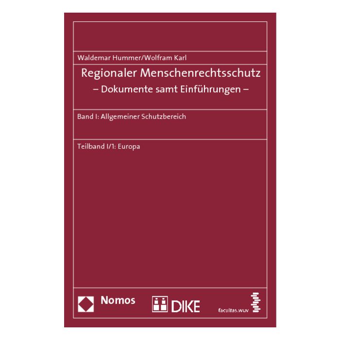 Der Teilband I/1 vereint alle menschenrechtsrelevanten Dokumente aus dem europäischen Raum. Der Teilband I/2 umfasst Menschenrechtsschutzinstrumente, die in Nord- und Südamerika, in Afrika sowie im arabisch-islamischen und asiatisch-pazifischen Raum ausgebildet wurden.