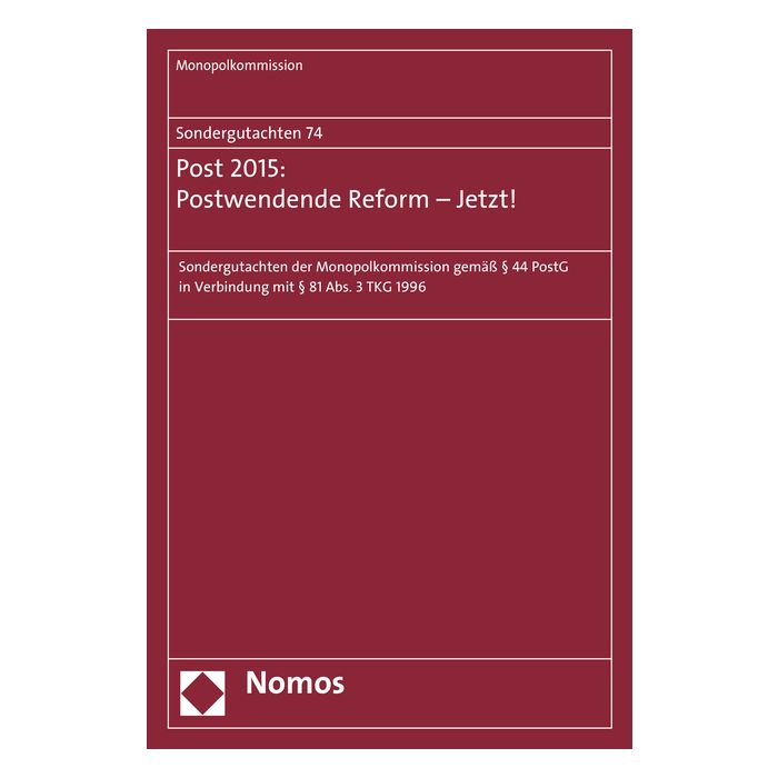 In ihrem 74. Sondergutachten „Post 2015: Postwendende Reform – Jetzt!“ stellt die Monopolkommission einen Stillstand in der Entwicklung des Wettbewerbs im Postsektor fest, weiterhin gekennzeichnet von der Vormachtstellung der Deutsche Post AG. Die Deutsche Post AG verfügt im lizenzpflichtigen Briefbereich über eine marktbeherrschende Stellung ohne enge Wettbewerber, im nicht lizenzpflichtigen Paketbereich über eine einflussreiche Marktposition bei einer geringen Anzahl an effektiven Wettbewerbern. Die gesetzlichen Rahmenbedingungen im Postwesen stehen seit Jahren einer erfolgreichen Wettbewerbsentwicklung entgegen und von politischen Entscheidungsträgern sind bislang keine wesentlichen Impulse zur Verbesserung ausgegangen. Die Monopolkommission sieht daher dringenden Handlungsbedarf bei Politik und Regulierer zur Förderung des Wettbewerbs auf den Postmärkten. Hierfür unterbreitet sie in diesem Gutachten Vorschläge für eine Reform des Regulierungsrahmens und das Ausschöpfen bestehender Potenziale der geltenden Regulierung.