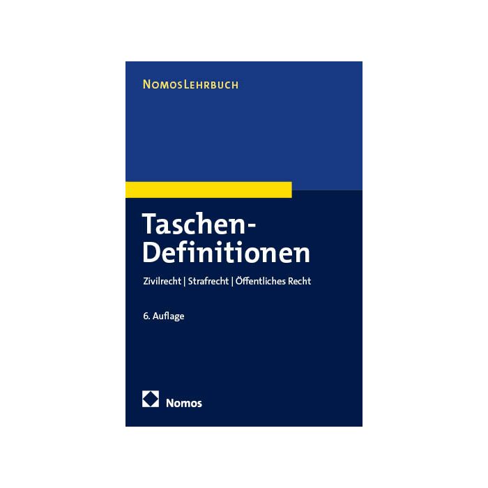 Der Band versammelt die gängigen Definitionen unbestimmter Rechtsbegriffe aus der Methodenlehre, dem Zivilrecht, dem Strafrecht, dem öffentlichen Recht und dem Völkerrecht. Das kompakte Format macht die Taschendefinitionen zum idealen Begleiter und ermöglicht es den Nutzer:innen, sich fast überall und im Grunde jederzeit mit dem Inhalt der Rechtsbegriffe vertraut zu machen. Das kleine Werk hilft beim ersten Zugang zu einem neuen Rechtsgebiet, indem es die wichtigsten Begriffe vorstellt. Es ist zudem ein idealer Begleiter in der Zeit der Prüfungsvorbereitung.