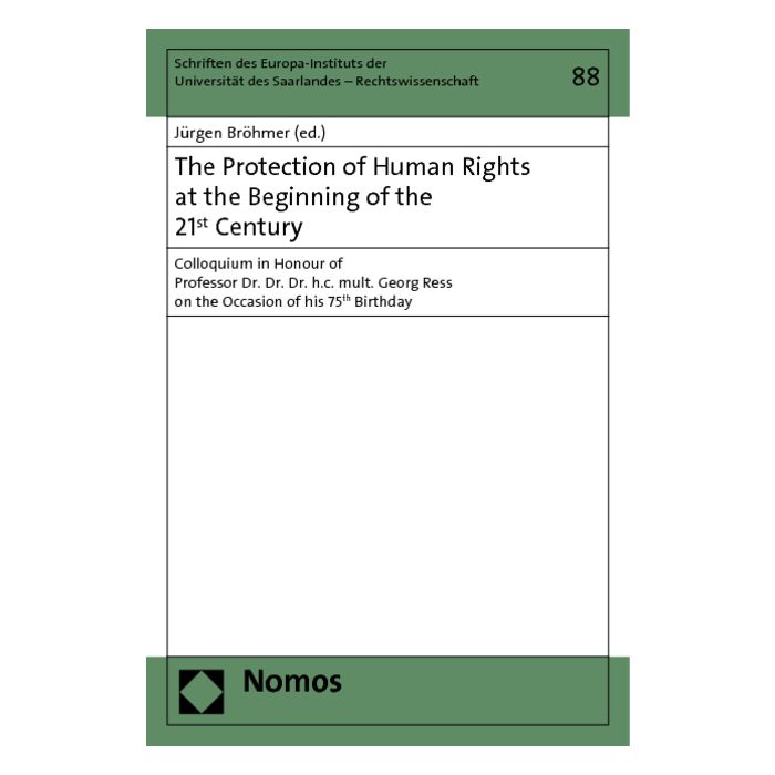 Am Europa-Institut der Universität des Saarlandes fand anlässlich des 75. Geburtstages von Prof. Dr. Dr. Dr. h.c. mult. Georg Ress, dem langjährigen Direktor des Europa-Instituts und ehemaligen deutschen Richter am Europäischen Gerichtshof für Menschenrechte in Straßburg, im Januar 2010 ein wissenschaftliches Festkolloquium statt. Die im Rahmen dieser Veranstaltung gehaltenen englischsprachigen Vorträge von Weggefährten, Kollegen und Freunden des Jubilars befassen sich mit aktuellen und grundlegenden Fragestellungen zum Schutz der Menschenrechte allgemein und durch den Europäischen Gerichtshof für Menschenrechte am Beginn des 21. Jahrhunderts. Dieser Band ist damit eine interessante und empfehlenswerte Lektüre für alle diejenigen, die sich mit aktuellen Fragen des Menschenrechtsschutzes beschäftigen.