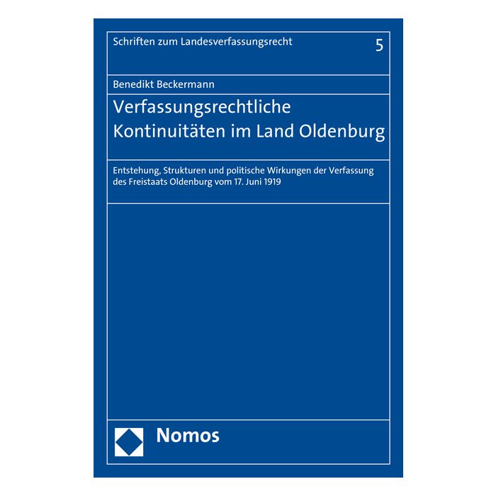 Die Arbeit liefert eine umfassende Darstellung des Verfassungsrechts des Freistaats Oldenburg. In der vergleichenden Perspektive zur parallel entstandenen Weimarer Reichsverfassung, aber auch zu den übrigen Länderverfassungen stellt sich Oldenburg als besonders ertragreiches Untersuchungsobjekt dar, nicht nur hinsichtlich der Strukturen, die in Oldenburg durch eine besonders starke Stellung des Staatsministeriums geprägt waren, sondern auch in Bezug auf die politische Entwicklung. Im Gegensatz zum Reich stand Oldenburg bereits ab 1923 unter der Regierung eines aus Nicht-Parlamentariern zusammengesetzten Beamtenkabinetts und war seit 1932 das erste Land der Weimarer Republik unter einer Alleinregierung der Nationalsozialisten. Insoweit eilte die Entwicklung in Oldenburg der in Berlin voraus.