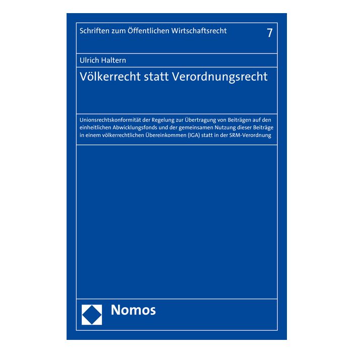 Der Band enthält ein Rechtsgutachten, das der Verfasser für das Bundesministerium der Finanzen verfasst hat. Das Gutachten geht der Frage nach, ob die Übertragung von Beiträgen auf den einheitlichen Abwicklungsfonds und die gemeinsame Nutzung dieser Beiträge in einem völkerrechtlichen Abkommen und nicht in der SRM-Verordnung selbst unionsrechtskonform ist. Das Werk erörtert Fragen der Kompetenzordnung, der verstärkten und loyalen Zusammenarbeit und des Demokratieprinzips.