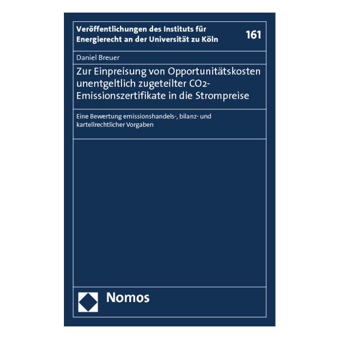 Die Kriterien, die für die Bestimmung der zulässigen Höhe einer Opportunitätskosteneinpreisung im EU-Emissionshandel relevant sind, werden ebenso erarbeitet, wie die tatbestandlichen und prozessualen Hürden, die eine Preismissbrauchsaufsicht nach §§ 29, 19 GWB und Art. 101 AEUV erheblich erschweren.