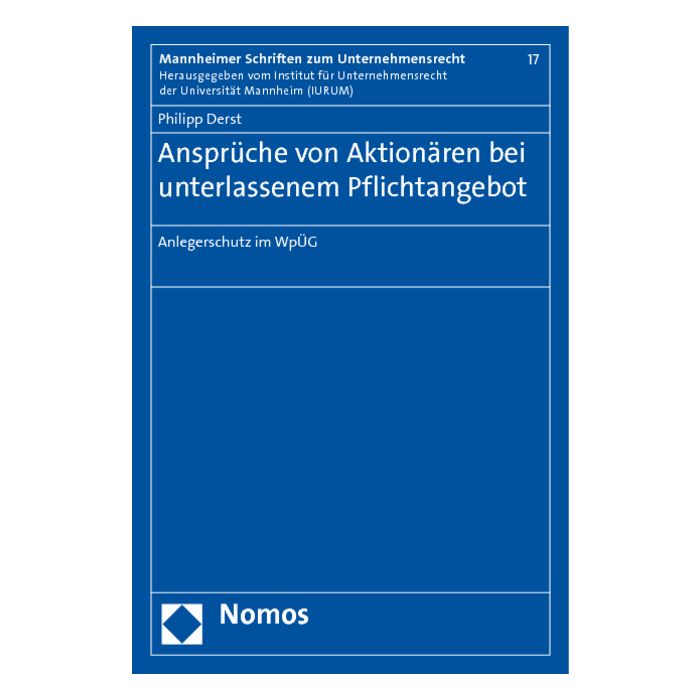 Schreitet die BaFin bei unterlassenem Pflichtangebot nicht ein, weil sie eine Kontrollerlangung des Bieters zu Unrecht verneint, stellt sich die Frage, ob die betroffenen Aktionäre nicht selbst zur Durchsetzung der Angebotspflicht berufen sind. Die Arbeit widmet sich diesem Problem und untersucht das Bestehen entsprechender Aktionärsansprüche. Da das Gesetz neben der kollektiven Rechtsdurchsetzung durch die BaFin auch Sanktionen kennt, deren Durchsetzung den Aktionären obliegt (§§ 38, 59 WpÜG), liegt dem Werk dabei der Gedanke eines ganzheitlichen WpÜG-Schutzkonzepts zugrunde, das es unter Berücksichtigung der im Kapitalmarktrecht häufig anzutreffenden Schutzgesetzproblematik näher zu analysieren gilt.