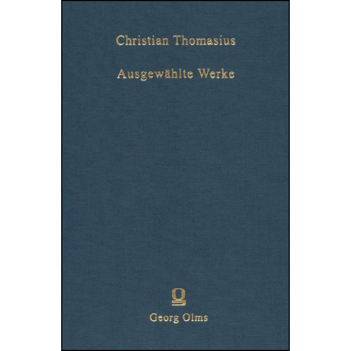 Christian Thomasius (1655-1728) is judged by most as the founder of German Enlightenment. Originally a legal scholar, he was also the first great philosphier of the Enlightenment and the author of the first German-language books on logic and ethics and edited the first German monthly jornal. As founder of, and professor at the Universtiy of Halle, he campaigned successfully aainst torture and witch-hunting and introduced the first systematical distinction between law and ethics. His writings include over 300 titles; a complete edition is neither available nor planned. The Selected Works presented here mainly contain his philosophical writings including those dealing with philosophy of law.