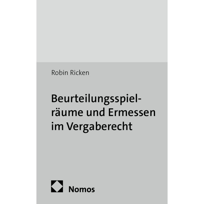 Die Studie untersucht Bestehen und Nachprüfung von Entscheidungsspielräumen im GWB-Vergaberecht. Diese stehen in einem Spannungsverhältnis zwischen einer den Gedanken der Flexibilität und Wirtschaftlichkeit dienenden Gestaltungsfreiheit und der Bindung an Gesetz und Recht bei der wirtschaftlich bedeutsamen Vergabe öffentlicher Aufträge.