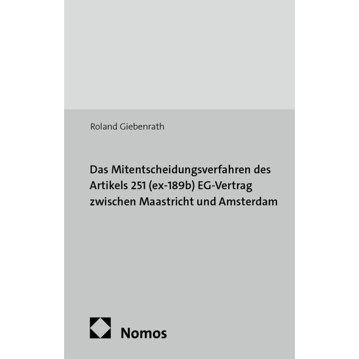Die Rechtsetzungsverfahren der Europäischen Union sind eine weithin unbekannte Materie. Dies steht im diametralen Gegensatz zur stetig wachsenden Bedeutung der nach diesen Verfahren erlassenen EU-Rechtsnormen für die Rechtsordnungen der Mitgliedstaaten. Der Vertrag von Maastricht hat mit Wirkung vom 1.11.1993 ein Rechtsetzungsverfahren mit starker Beteiligung des Europäischen Parlaments eingeführt: das (Mitentscheidungs-)Verfahren des Artikels 251 (ex-189b) des EG-Vertrages. Die Arbeit von Roland Giebenrath zeichnet seine Entstehungsgeschichte und seine aktuelle Einordnung in die komplizierte Systematik der EG-Entscheidungsverfahren nach, analysiert sodann seinen Ablauf und die den Organen gegebenen Möglichkeiten der Einflußnahme, beleuchtet seine Rechtsprobleme sowie die Anwendungspraxis und stellt schließlich die durch den Vertrag von Amsterdam bewirkten Änderungen zur Reform des Verfahrens dar.