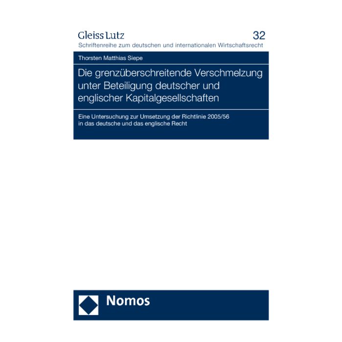 | Subtitle | Eine Untersuchung zur Umsetzung der Richtlinie 2005/56 in das deutsche und das englische Recht |