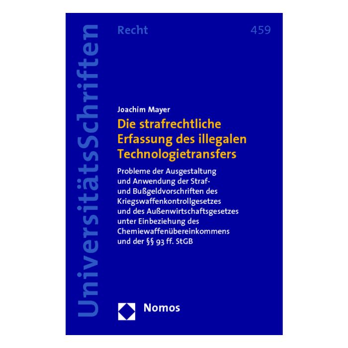 Die Straf- und Bußgeldvorschriften des Außenwirtschaftsgesetzes (AWG), des Gesetzes über die Kontrolle von Kriegswaffen (KWKG) sowie des Ausführungsgesetzes zum Chemiewaffenübereinkommen (CWÜAG) sind zwar in den verschiedenen Werken zum Nebenstrafrecht kommentiert. Die strafrechtlichen Problemstellungen in diesem Bereich haben in den letzten 15 Jahren jedoch erhebliche praktische Bedeutung erlangt. Die in Frage stehenden Verstöße wurden vom Gesetzgeber von bloßen Kavaliersdelikten zur Schwerstkriminalität hochgestuft. Bislang fehlte eine übergreifende strafrechtsdogmatische Behandlung des illegalen Technologietransfers.