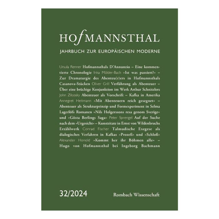 ‘Hofmannsthal. Jahrbuch zur europäischen Moderne’ has been published since 1993 and is considered the most important organ of Hofmannsthal research. It places the works of Hugo von Hofmannsthal (1874–1929) in the aesthetic and socio-historical context of European modernist culture and, in addition to the publication of previously unpublished sources, offers contributions by renowned scholars on literature, the visual arts, philosophy, psychology, politics, dance and theatre at the turn of the century and classical modernism.