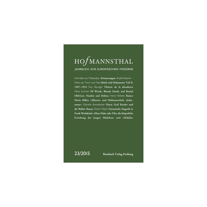 Das Hofmannsthal-Jahrbuch ist weltweit das wichtigste Organ der Hofmannsthal-Forschung. Es bietet neben der Veröffentlichung bisher unpublizierter Briefwechsel Beiträge namhafter Wissenschaftler zur europäischen Kultur der Moderne: Henriette von Motesiczky: »Erinnerungen« Rudolf Kassner an Marie von Thurn und Taxis Briefe (1902–1933) und Dokumente, Teil II: 1907–1933 Paul Bourget: Théorie de la décadence Maria Euchner: Of Words, Bloody Deeds, and Bestial Oblivion: Hamlet and Elektra Heinz Rölleke: Rainer Maria Rilkes »Alkestis« und Hofmannsthals »Jedermann«. Parallelen und Einflüsse Gabriele Brandstetter: Harry Graf Kessler und die ›Ballets Russes‹. Plastische Körperkunst Nijinskys im Kontext der europäischen Moderne Daniel Hilpert: ›Triumph des Körpers‹. Literarische Eugenik in Frank Wedekinds »Mine-Haha oder Über die körperliche Erziehung der jungen Mädchen« und »Hidalla«